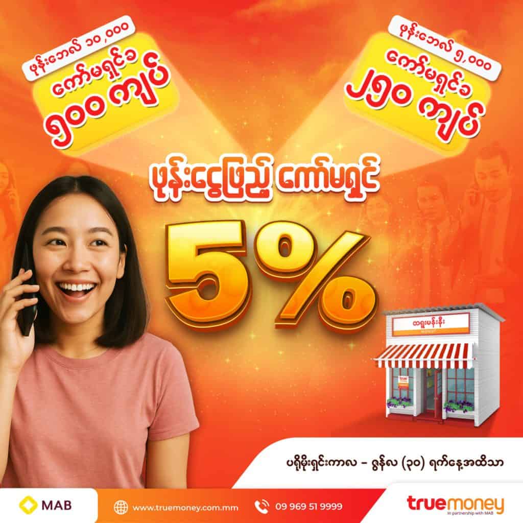 ဖုန်းငွေဖြည့် 5% ကော်မရှင် ပိုမိုရယူ ( True အေးဂျင့် ပရိုမိုးရှင်း )