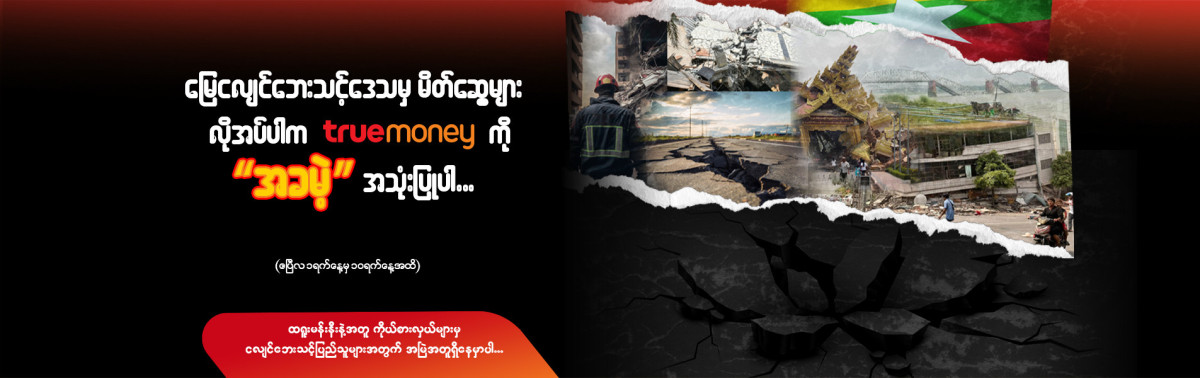 TrueMoney ဝန်ဆောင်မှုအားလုံးကို “အခမဲ့” ဖြင့် ငလျင်ဒဏ် အရေးပေါ်အချိန်မှာ ကနဦးထောက်ပံ့ရေးလုပ်ငန်းစဉ်အနေနဲ့ TrueMoney Myanmar မှ စီစဥ်ပေးထားပါတယ်။