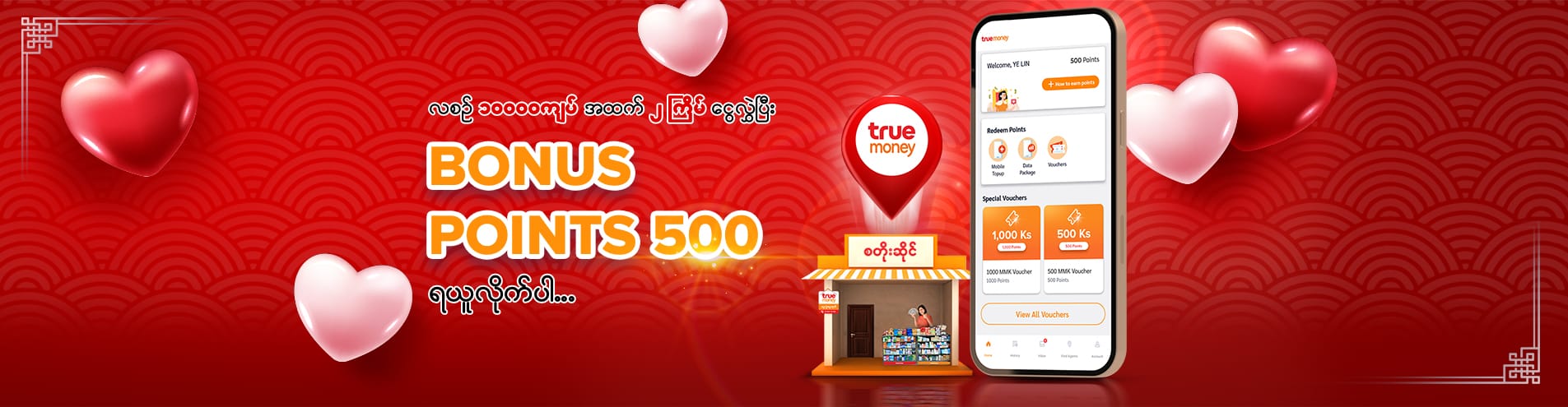 TrueMoney နဲ့ငွေလွှဲပြီး Bonus Points ၅၀၀ ရယူလိုက်ပါ