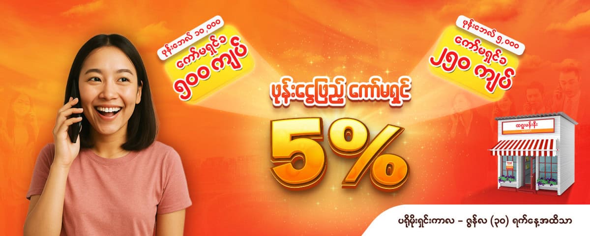 ဖုန်းငွေဖြည့် ဝန်ဆောင်မှုပေးရင်း ယခင်ထက်ပိုတဲ့ ကော်မရှင် ၅% ရယူလိုက်ပါ။ 🤩☎️