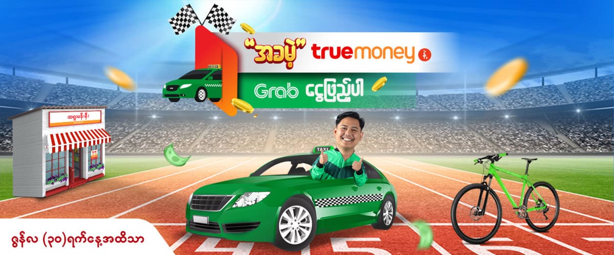 ၁)‌ ဤအစီအစဥ်သည် Grab Driver နဲ့ Biker Top-up ငွေဖြည့်ဝန်ဆောင်မှုများကို TrueMoney အေးဂျင့်ဆိုင်တိုင်းမှာ အခမဲ့ ဝန်ဆောင်မှုရယူနိုင်မှာဖြစ်ပါသည်။